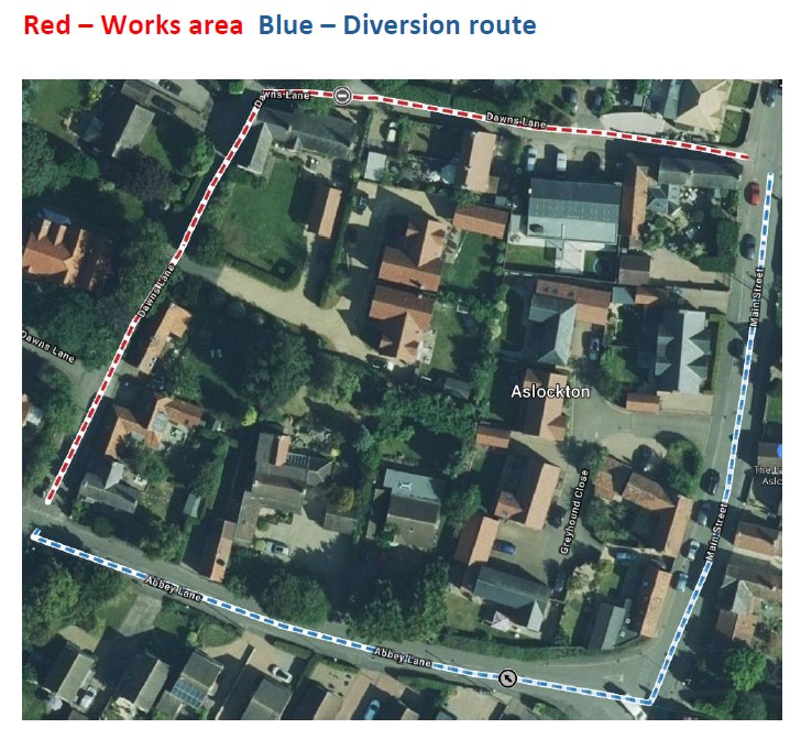 Location of roadworks: Dawns Lane, Aslockton – For its entire length.